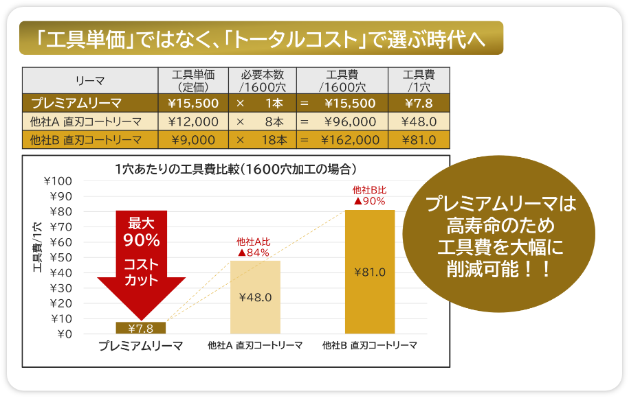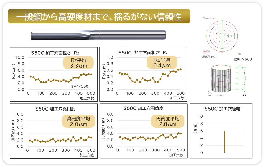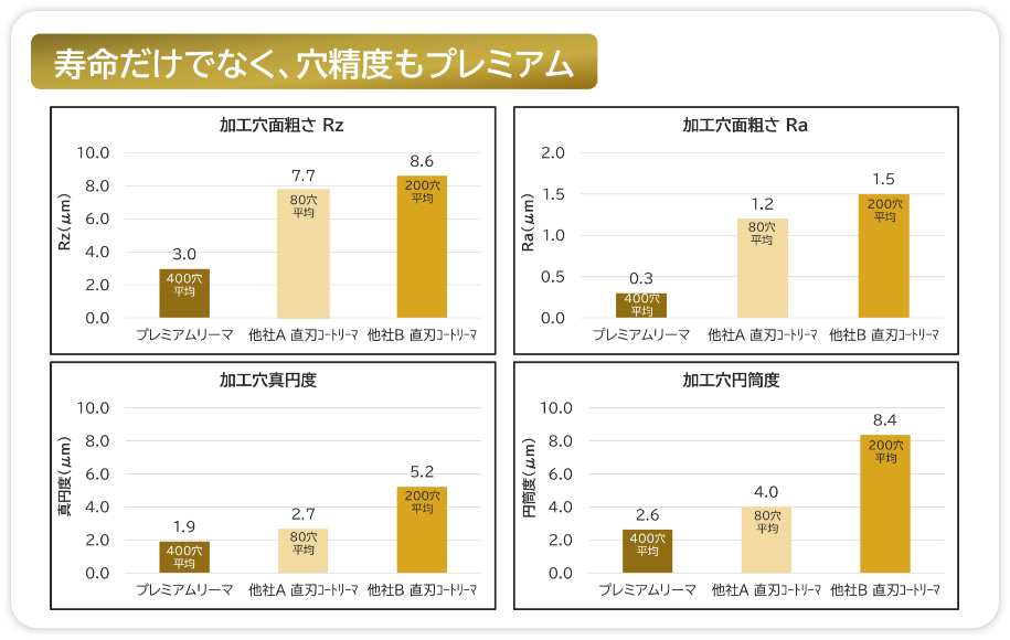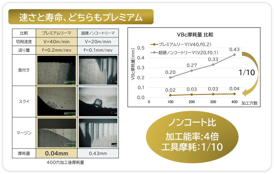 - 高能率加工と工具摩耗の低減をバランスよく実現。